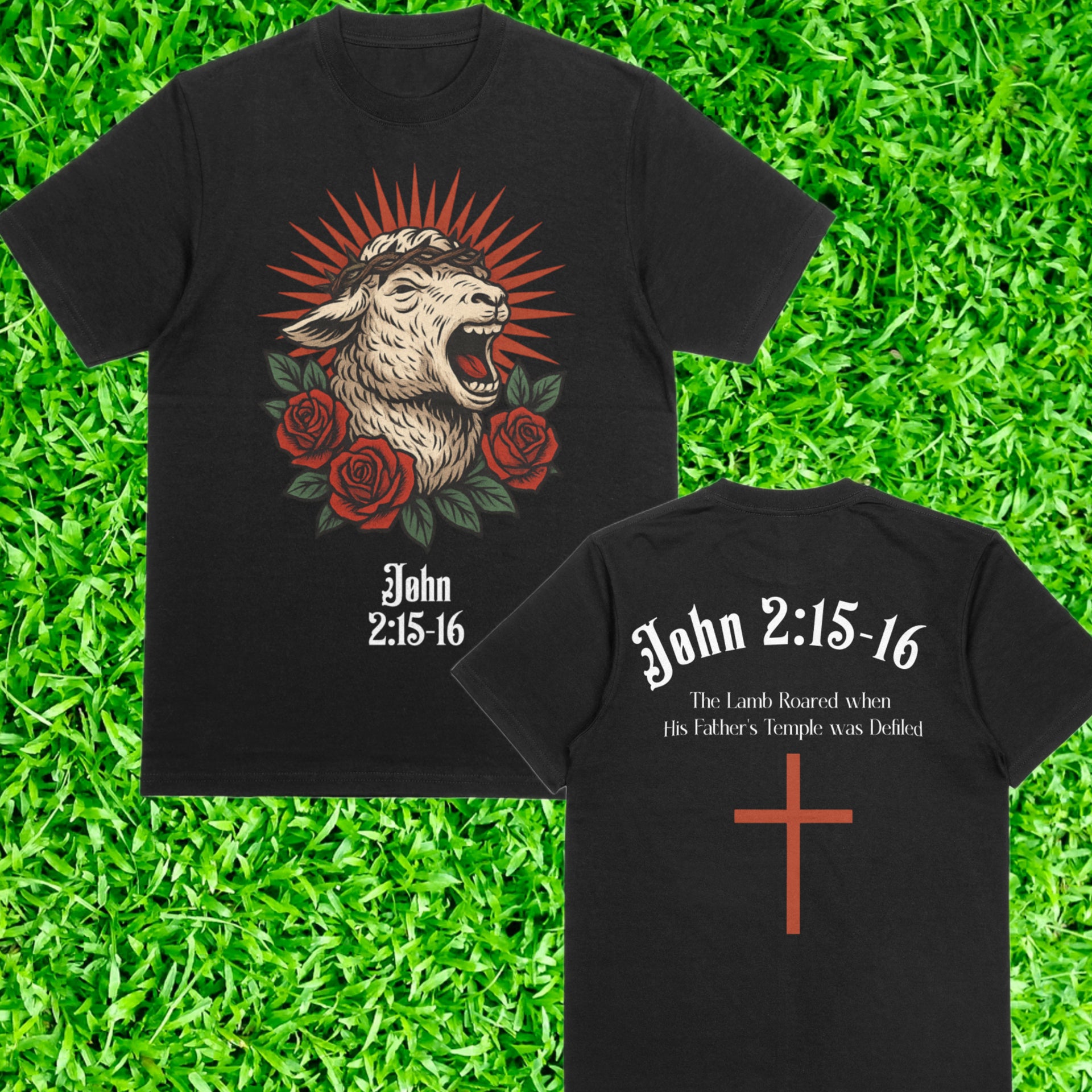 This bold and powerful design is inspired by John 2:15–16, where Jesus flips the tables in the temple and drives out corruption with righteous fire. Featuring striking artwork that captures strength, authority, and holy conviction, this shirt is a reminder to stand firm in faith and truth.